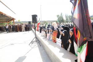 حاضران در این تجمع با شعارهای «مرگ بر اسراییل» «مرگ بر رژیم غاصب کودک کش» «مرگ بر آمریکا» «اسراییل جنایتکار نابود باید گردد» و «وای اگر خامنه ای حکم جهادم دهد، ارتش صهیون نتواند که جوابم دهد» انزجار خود را از سفاکی های صهیونیست های گرگ صفت اعلام و برای پیروزی رزمندگان اسلام و جبهه مقاومت دعا کردند.