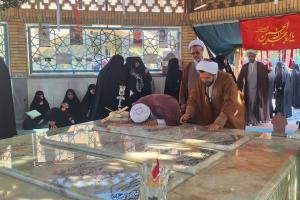 در پایان، اساتید، طلاب و کارمندان جامعه الزهرا سلاماللهعلیها ضمن زیارت مزار سه شهید گمنام دفاع مقدس، با آرمان های امام خمینی(ره)، انقلاب اسلامی و شهدا تجدید پیمان بستند.