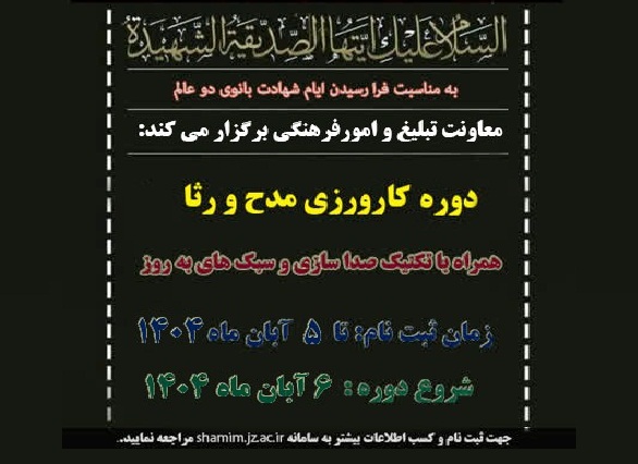 به گزارش روابط عمومی، در آستانه فرا رسیدن ایام فاطمیه، کارگاه دو روزه مدح و رثا جهت توانمندسازی مبلغان از سوی معاونت تبلیغ و امور فرهنگی جامعه الزهرا سلاماللهعلیها برگزار میشود.