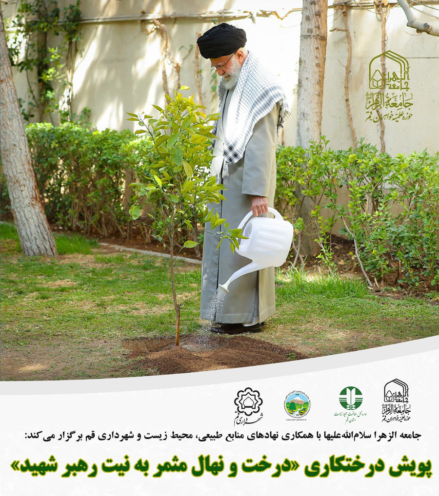 جامعه الزهرا سلام‌الله‌علیها و نهادهای مربوطه قم امسال به نیت رهبر شهید و در امتداد سنت حسنه درختکاری امام خامنه ای در هر سال، پویش «درختکاری به نیت رهبر شهید» را برگزار می‌کنند.